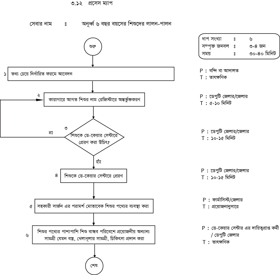 কারাগারে মায়ের সাথে অবস্থানরত অনূর্ধ্ব ৬ বছর বয়সী শিশু সংক্রান্ত তথ্য নিচে প্রসেস ম্যাপ আকারে দেওয়া হলোঃ