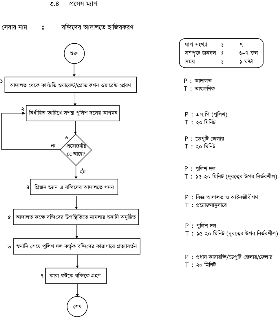 বন্দির আদালতে হাজিরা সংক্রান্ত প্রসেস ম্যাপ নিচে দেওয়া হলোঃ